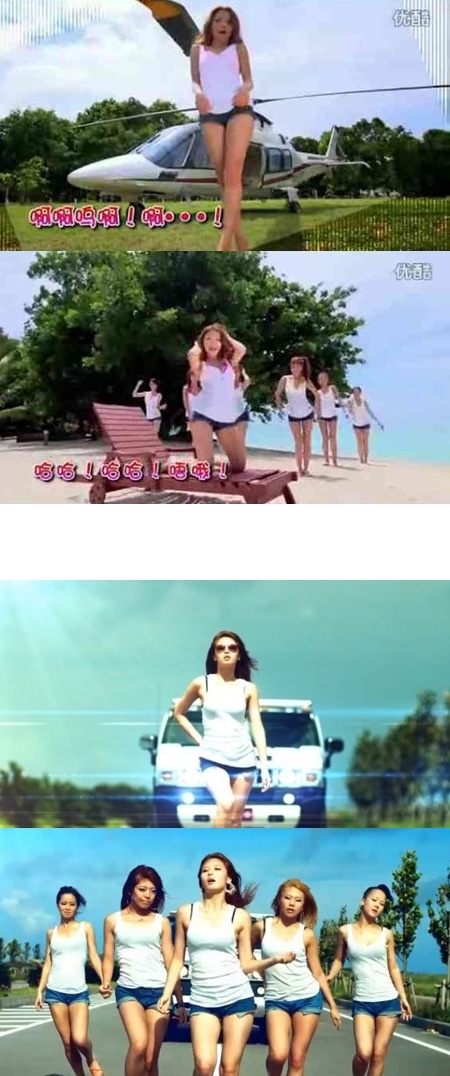 ในภาพเป็นภาพนักร้องสาวชาวจีนที่สวมเสื้อกล้ามและกางเกงฮอตแพนช์ขาสั้นเหมือนกับที่ฮยอนอาสวมใส่ เน้นสัดส่วนความโค้งเว้าที่เซ็กซี่ แม้แต่ท่าเต้นเพลง 'Bubble Pop' ที่โชว์ความน่ารักและเซ็กซี่ ยังเหมือนกันตั้งแต่ต้นจนจบ ส่วนแดนเซอร์หญิงที่ยืนอยู่ด้านหลังก็ยังเคลื่อนไหวเหมือนกันอีกด้วย ซึ่งถ้าจะมีสิ่งที่แตกต่างกันก็มีเพียงสิ่งเดียวเท่านั้นคือ รถที่ปรากฎในมิวสิควิดีโอของฮยอนอา ถูกเปลี่ยนเป็นเฮลิคอปเตอร์แทน