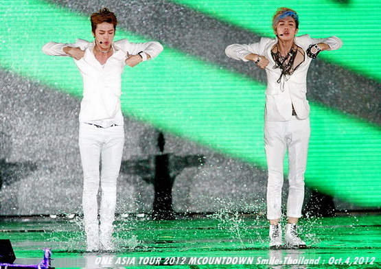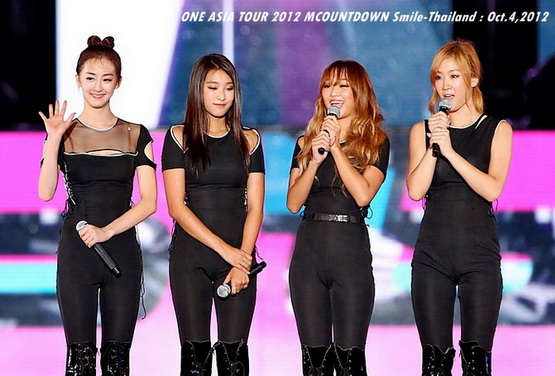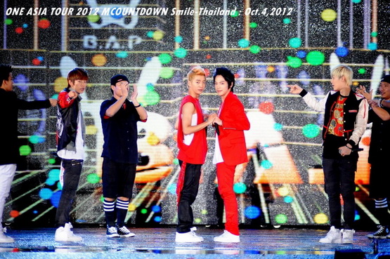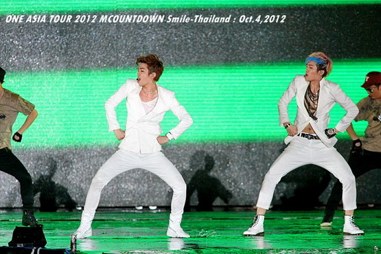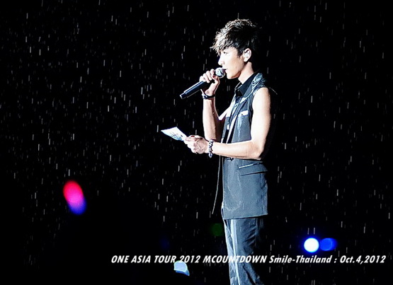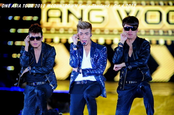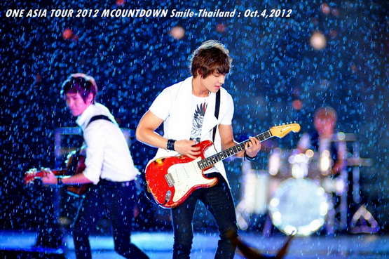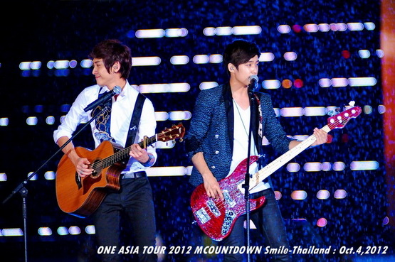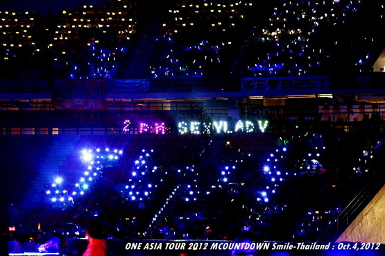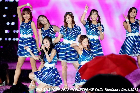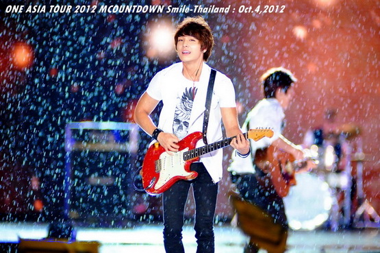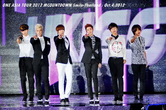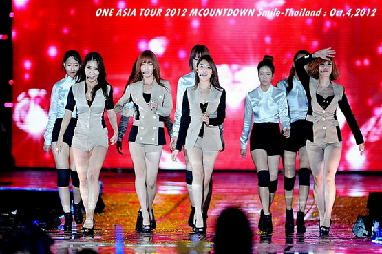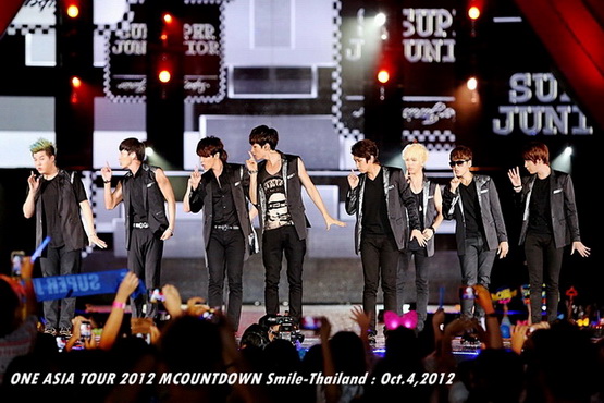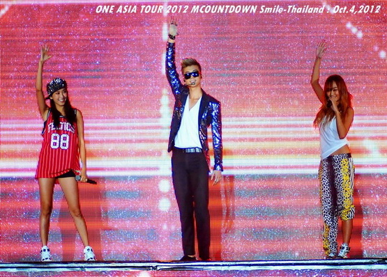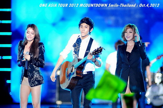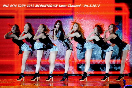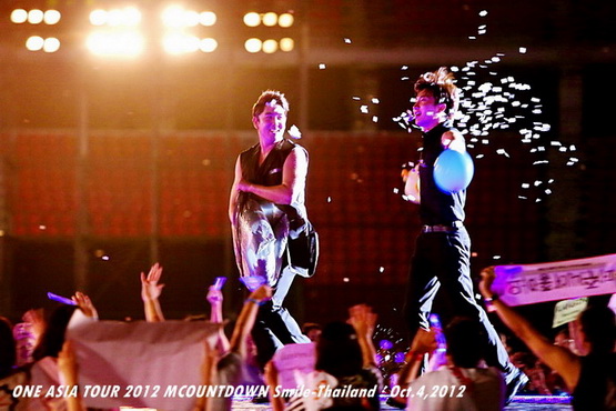 วันพฤหัสบดีที่ 4 ตุลาคม 2555 ที่เพิ่งผ่านไปหมาดๆ จึงถือเป็นฤกษ์งามยามดี สำหรับการโคจรมาพบกันระหว่างไอดอลเกาหลีระดับท็อปสตาร์ 15 ศิลปินและเหล่าสาวก K-POP ชาวสยามประเทศ ในงานมหกรรมคอนเสิร์ต ''วัน เอเชีย ทัวร์ 2012 เอ็มเคาท์ดาวน์ สไมล์-ไทยแลนด์'' (ONE ASIA TOUR 2012 MCOUNTDOWN Smile-Thailand) ณ สนามราชมังคลากีฬาสถาน หัวหมาก โดยการแสดงเริ่มต้นขึ้นที่เวลา 19:10 น. ท่ามกลางสายฝนโปรยปราย ซึ่งทำเอาชาวเค-ป็อปได้เปียกปอนไปตามๆ กัน ไม่ว่าจะเหล่าผู้ชมชาวไทยและต่างประเทศกว่า 3 หมื่นคน รวมถึงเหล่าไอดอลจากแดนกิมจิก็ล้วนชุ่มฉ่ำกันถ้วนหน้าทั้ง 15 ศิลปิน