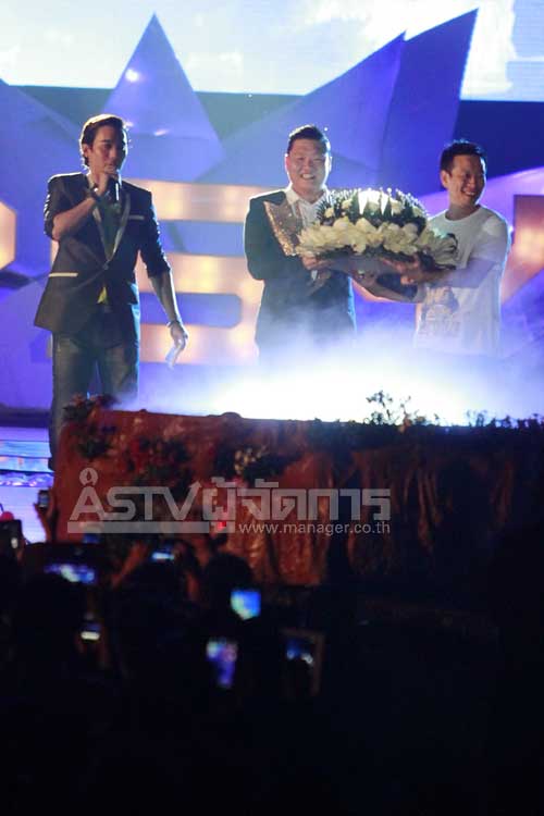 "ไซ" โชว์ท่าเต้นควบม้าพาเพลง "กังนัม สไตล์" กระหึ่มสนามบอลเอสซีจี พร้อมขอบคุณแฟนเพลงชาวไทยที่มีส่วนทำให้ตนเองมีวันนี้