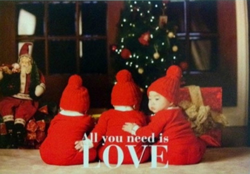 จากในภาพนั้น เป็นภาพที่ประกอบไปด้วยลูกชายแฝด 3 ที่น่ารักของเขา ภาพแรกเป็นภาพหันหน้า เผยให้เห็นถึงใบหน้าท่าทางที่ดูสดใสของลูกๆของเขา อีกภาพจะเป็นภาพหันหลัง และมีข้อความว่า สิ่งที่คุณต้องการทั้งหมดก็คือความรัก